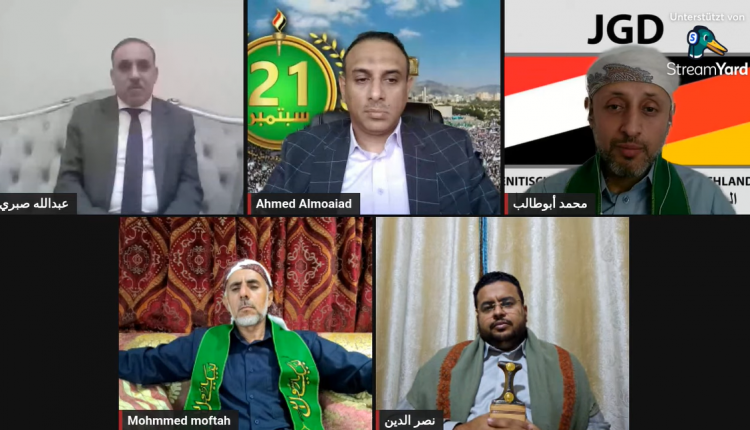 أقامت الجالية اليمنية في ألمانيا ندوة نقاشية – حوارية عبر دائرة تلفزيونية مغلقة بعنوان “صمود ثورة الحادي والعشرين من سبتمبر أمام المؤامرات”، تزامنا مع ذكرى المولد النبوي الشريف.