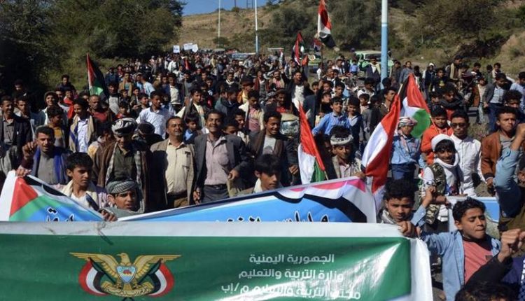 وفي المسيرة رفع الطلاب العلم اليمني والفلسطيني واللافتات المعبرة عن تضامنهم مع الشعب الفلسطيني، مرددين هتافات مناوئة للعدو المحتل ومباركة للقوة الصاروخية والبحرية اليمنية.