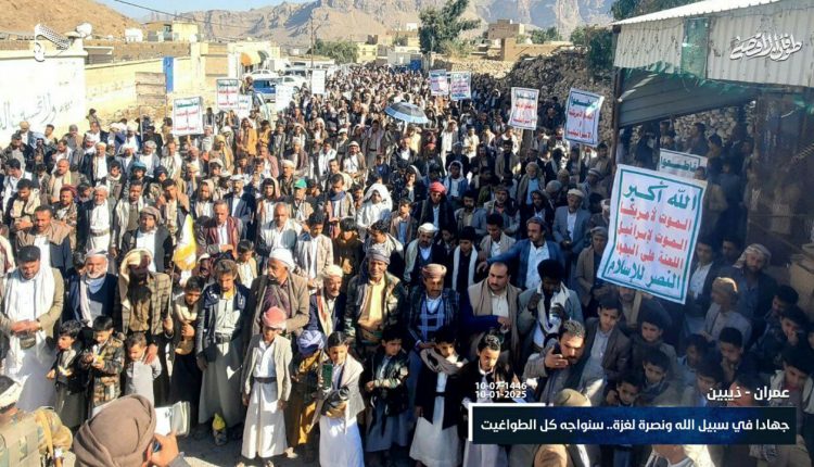 شهدت محافظة عمران اليوم حشودًا جماهيرية مهيبة في 63 ساحة تضامنًا ودعمًا لغزة والوقوف في وجه الغطرسة الإسرائيلية، الأمريكية البريطانية تحت شعار “جهاداً في سبيل الله ونصرة لغزة.. سنواجه كل الطواغيت”.
