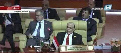 يحضر القمة واليمن من أبرز القضايا التي يناقشونها ،ويتركوه صامتا غير معني بما يجري ويدور نائماً تارة ، وتارة أخرى بين النوم واليقظة ، لا يلقي كلمة ولا يعبر بشيئ فيما ملك البحرين يلقي كلمة هامة عن الوضع في المنطقة واليمن !!!