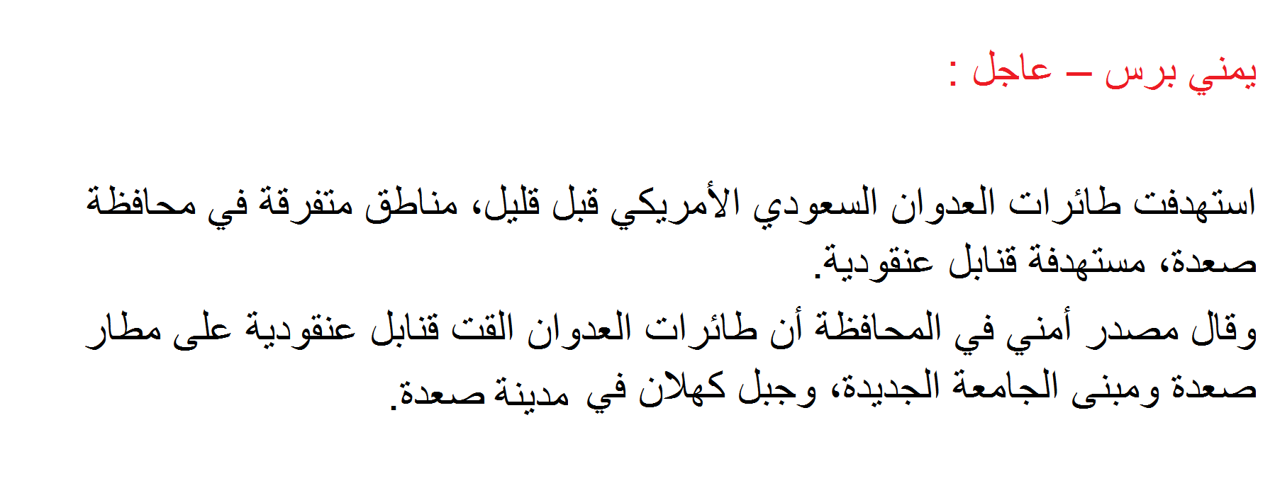 عاجل : طائرات العدوان تستهدف المطار والجامعة الجديدة بقنابل عنقودية Last updated أبريل 18, 2018 Share Share