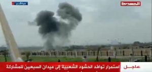 استهدف طيران العدوان السعودي الامريكي بغارتين همجيتين محيط ميدان السبعين والمكتض بمئات الآلاف من المشيعين للرئيس الشهيد ورفاقه عليهم السلام في صورة تكس مدى الخساسة والنتانة والهمجية الفضة والحقد الدفين للشعب اليمني وللإسلام والمسلمين …