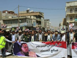 ففي صعدة خرجت مسيرة حاشدة تقدمها محافظ المحافظة محمد جابر عوض ووكلاء المحافظة وفاءً للشهيد الرئيس صالح الصماد تحت عنوان ” مسيرة الوفاء لرئيس الشهداء “.