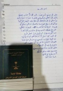 تناقل ناشطون عبر مواقع التواصل الإجتماعي، رسالة خطية من أحد مرتزقة العدوان السعودي، ضمنها بصورة من تأشيرة دخوله الى المملكة والممنوحة له من الملك السعودي سلمان بن عبدالعزيز.