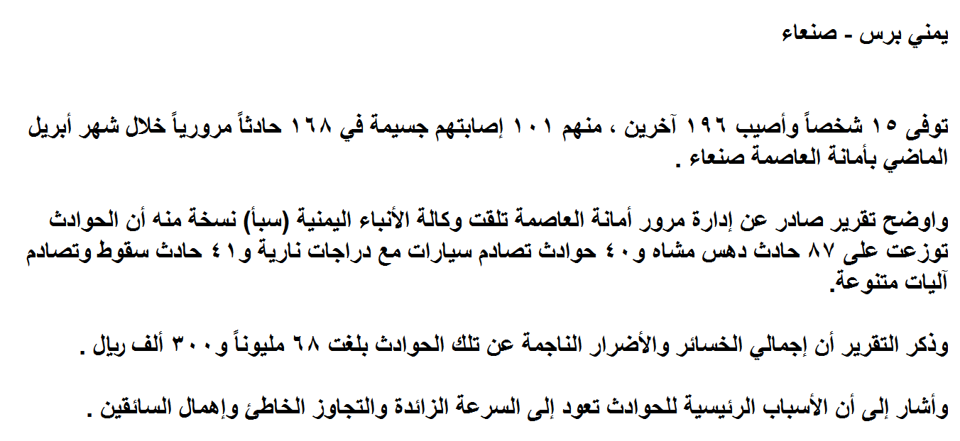 ?????????? وفاة وإصابة 211 شخصاً في أمانة العاصمة تعرف على السبب !! Last updated مايو 18, 2018 Share Share