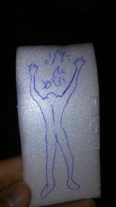 من داخل سجن عدن، قام المحتجزون بتهريب رسائل ورسومات إلى وكالة الأسوشييتد برس حول الإساءة الجنسية. تم عمل الرسومات على ألواح بلاستيكية مع قلم حبر أزرق.
