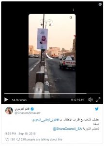 وتظهر المقاطع المنشورة على حساب “الدوسري” بحسب ما رصدته (وطن)، عدة أشخاص ظهر كل منهم بمكان مختلف يسخرون وهم يقودون سياراتهم من صور الملك وولي عهده المتناثرة في شوارع المملكة بكثرة.