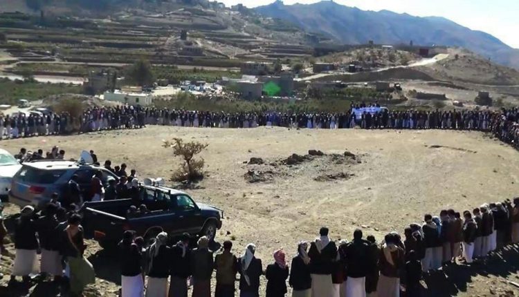 وقفة لأبناء مديرية ساقين بصعدة تنديداً باستمرار جرائم العدوان