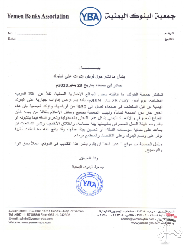 هام | البنوك اليمنية تكشف حقيقة إجبارها على دفع إتاوات لحكومة الانقاذ الوطني (بيان)