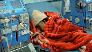 في حلبة الصراع بين الموت والحياة حوصر مرضى الفشل الكلوي غير المقتدرين على زارعة كلى على نفقتهم في المستشفيات الخاصة ، في هذا السياق يوضح رئيس هيئة مستشفى الثورة العام بصنعاء إن اثار العدوان على القطاع الصحي كانت كبيرة جدا وأن زراعة الكلى في ظلها كانت محفوفة بمخاطر الفشل يقول ابو طالب “أربع سنوات من المعاناة على مستوى العلاج البسيط لم نجد ه ، معاناة شديدة .. زراعة الكلى كان من السهل أننا نزرع كلى لكن ما بعد زراعة الكلى؟؟ لم يكن هناك ادوية ما بعد زراعة الكلى التي تهبط ا لمناعة وإلا فشل ذريع ستحصل .. فشل ذريع.. عندما نزرع كلى اليوم بكرة بعد بكرة لا يوجد أدوية تهبط ا لمناعة وتحافظ على الكلى المتبرع بها ستموت الكلى حتماً ..وستزداد معاناة المرضى “.