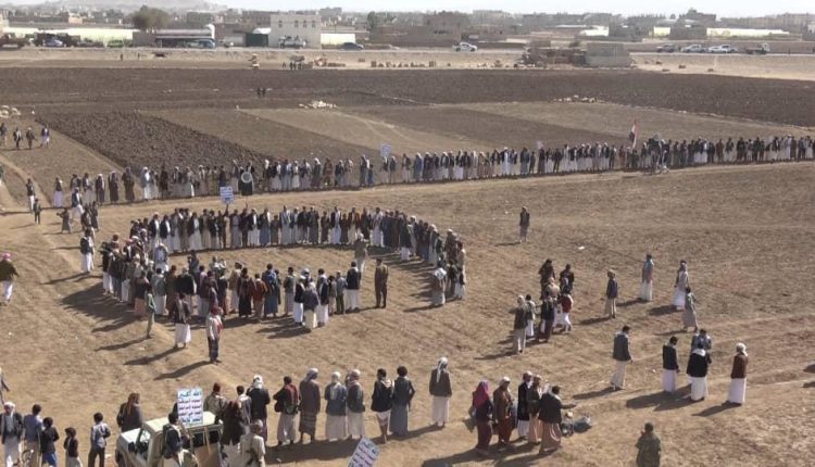 نظم أبناء مديرية جبل عيال يزيد بمحافظة عمران اليوم وقفة احتجاجية للتنديد باستمرار العدوان ورفضا للتطبيع مع الكيان الصهيوني.