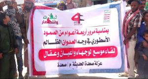 واكدا المشاركون في الوقفة استمرارهم بالصمود والتحدي للعام الخامس الذي تفصله ايام قلائل من دخوله في ظل العدوان المتواصل على الشعب اليمني.