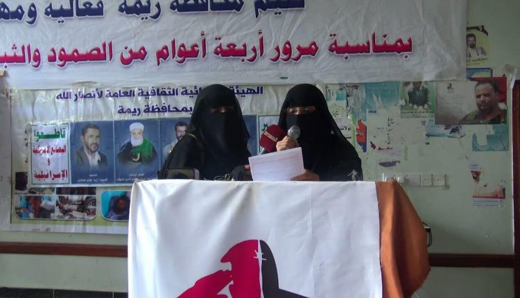 ودعت حرائر ريمة الى مواصلة رفد الجبهات بالرجال والمال كما دعت المشاركات الاحرار من هذا الشعب الى التحرك الجاد وتحمل المسؤولية ومواجهة العدوان بكل قوة وايمان وصلابة.
