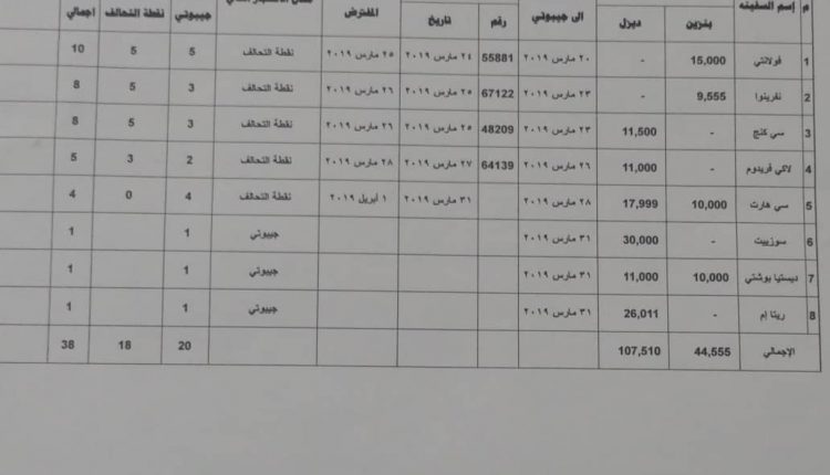 وحصل “يمني برس” على كشف تفصيلي وبيانات للسفن الذي مازال التحالف ومرتزقته قاما باحتجازها في جزر فرسان قبالة ميناء جيزان وجيبوتي وكالتالي: