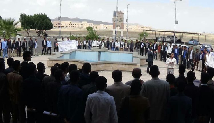 وقفة احتجاجية بجامعة ذمار استنكارا لمجزرة العدوان بحق طالبات مدرسة الراعي