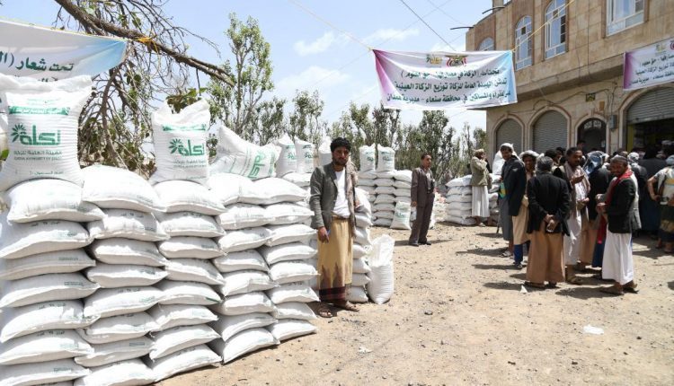 دشن وكيل الهيئة العامة للزكاة الأستاذ علي السقاف ووكيلا محافظة صنعاء عاطف المصلي ومحمد دحان اليوم، توزيع الزكاة العينية للفقراء والمساكين بمديرية همدان.