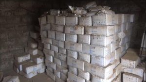 وقد جراء مؤخراً الكشف عن شحنة مساعدات بمخزنين للغذاء العالمي بمديرية المغلاف في محافظة الحديدة ، وتتضمن الشحنة المخزنة كميه كبيره من غذاء الصويا منتهة الصلاحية والتي يوجد بداخلها حشرات فضلا عن انتفاخ بعض الاكياس