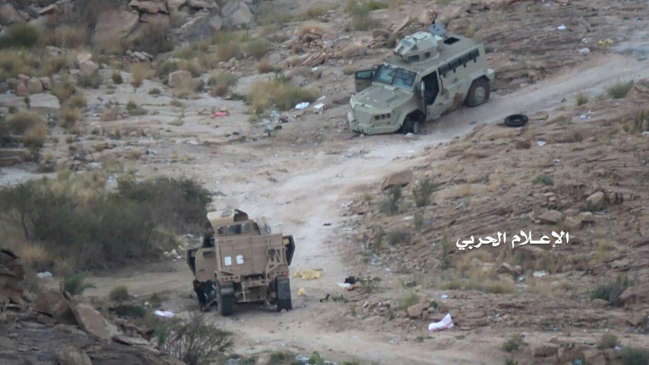 وتظهر الصور احكام سيطرة الجيش واللجان الشعبية على أكثر من 14 موقع عسكري لمرتزقة الجيش السعودي الامريكي في مجازة الغربية في عسير، واحراق عدد من الآليات العسكرية تابعة للمرتزقة، واغتنام عتاد عسكري من مختلف الاسلحة المتنوعة.