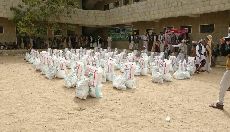 صعدة : مؤسسة الزهراء تدشن توزيع السلال الغذائية لأسر شهداء وجرحى مجزرة طلاب ضحيان