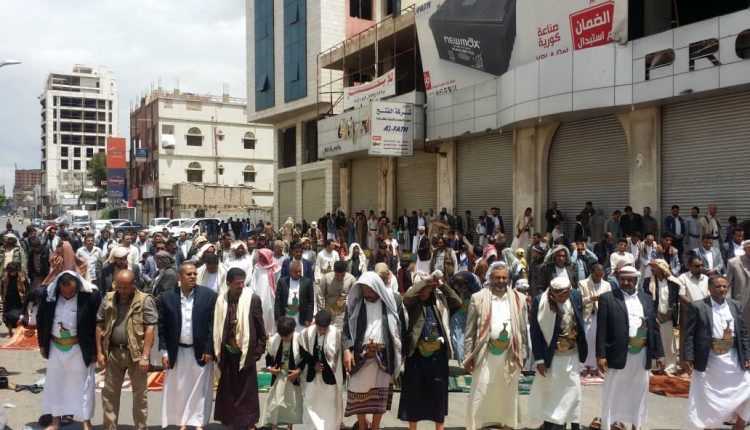 حيث أدى المصلين صلاة الجمعة اليوم في شارع الستين وتعتبر هذا الجمعة السادسة على التوالي للمعتصمين والتي كانت تحت شعار ” جمعة استنكار الصمت الاممي ”