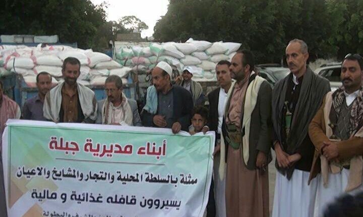 قافلة غذائية ومالية من مديرية جبلة بإب دعما لأسر المرابطين