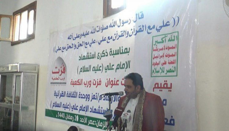 أقام مكتب الاوقاف والارشاد ووحدة الثقافية القرآنية بالمحافظة تعز عصر اليوم بجامع الجند ندوة بعنوان  فزت ورب الكعبة محاور الندوة التي استعرضت في عدد من الكلمات حول مناقب الامام علي عليه السلام ومكانته الايمانية وحركته وارتباطه بالكبير بالرسول الاكرم صلوات الله عليه واله وسلم وأيضاً حول ارتباط اهل اليمن بسيرة الامام علي وبثقافته وسيرته الجهادية وان صمود وصبر اليمانيون اليوم هو من ثمار ذلك الارتباط العظيم بالإمام علي ابن ابي طالب عليه السلام