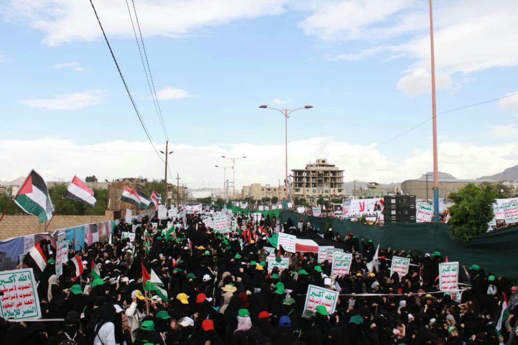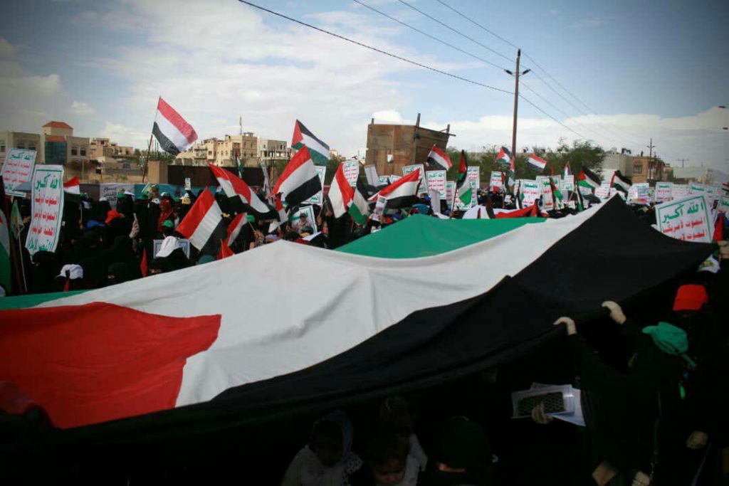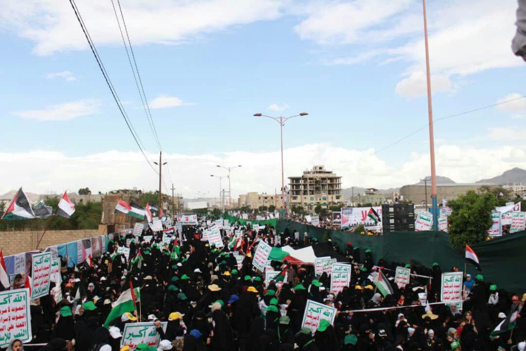 بحضور نسائي مهيب ارتسمت لوحة شموخ وعظمة تجسدت بصورةِ مشاركة فاعلة لحرائر وأطفال اليمن في فعالية يوم القدس العالمي في شارع الستين الشمالي بالعاصمة صنعاء، تجلت فيها كل معاني الولاء والوفاء للقضية الفلسطينية وللشعب الفلسطيني في ذكرى احياء يوم القدس العالمي.