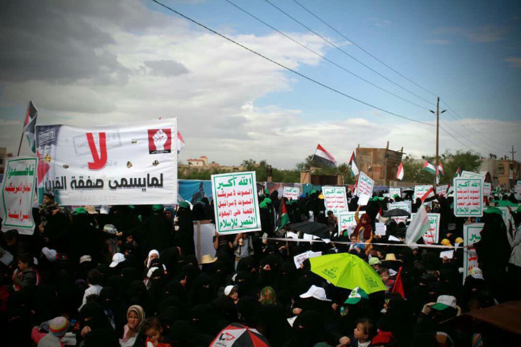 وكشفت المرأة اليمنية بهتافاتها وبصرخاتها في تظاهرة اليوم “لا لصفقة ترامب” بأن اسرائيل هي “السرطان وأمريكا هي الشيطان” وأن أدواتها هي عربان الخليج وأمراء النفط وعلى رأسها مملكة الشر وأنه مهما حاول العدو تزييف الحقائق وحرف بوصلة العداء لدولة أخرى أو للضد الداخلي إلا أن الشعب اليمني يعي عمق المخطط وحقيقة المؤامرة.