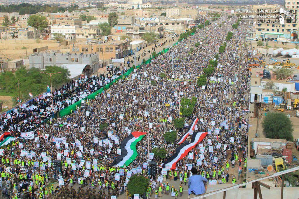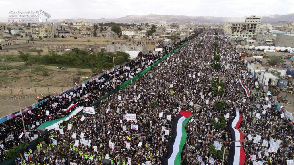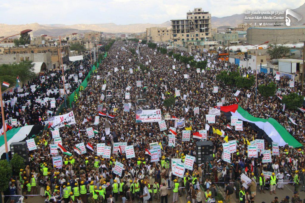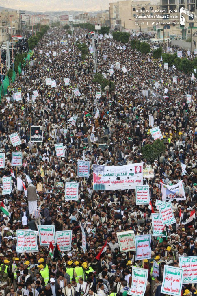 وأكدت الحشود الجماهيرية أن إسرائيل هي العدو الحقيقي للأمة، وأن القضية الفلسطينية هي المركزية والأولى للأمة .