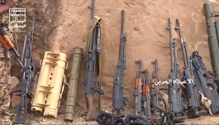 وأظهرت المشاهد، كميات من الأسلحة والذخائر المتنوعة، اغتنمها أبطال الجيش واللجان الشعبية، خلال العملية الواسعة والسيطرة على عدد من المواقع العسكرية السعودية.
