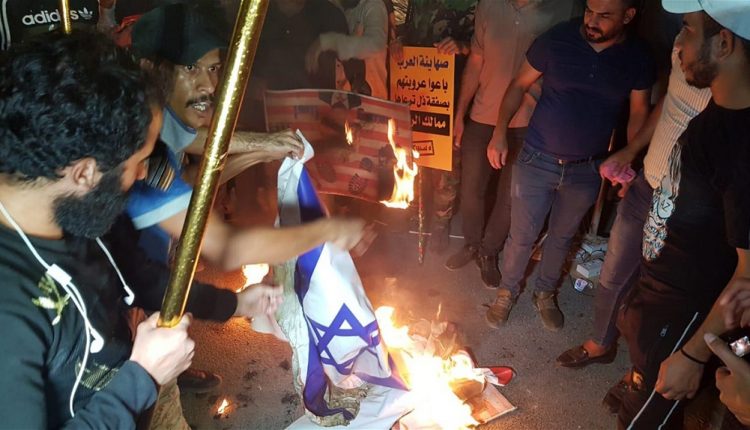 واقتحم العشرات من العراقيين مساء يوم الخميس، مقر السفارة البحرينية في منطقة المنصور ببغداد، تنديدا بصفقة القرن وورشة المنامة التي قاطعها العراق.