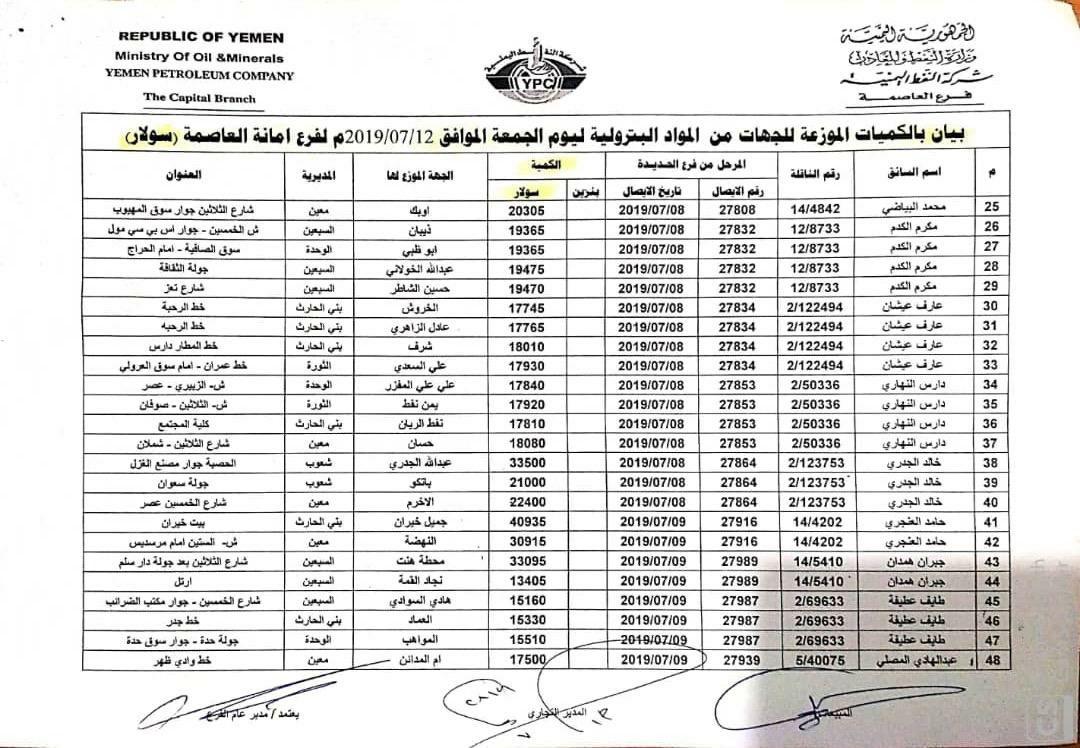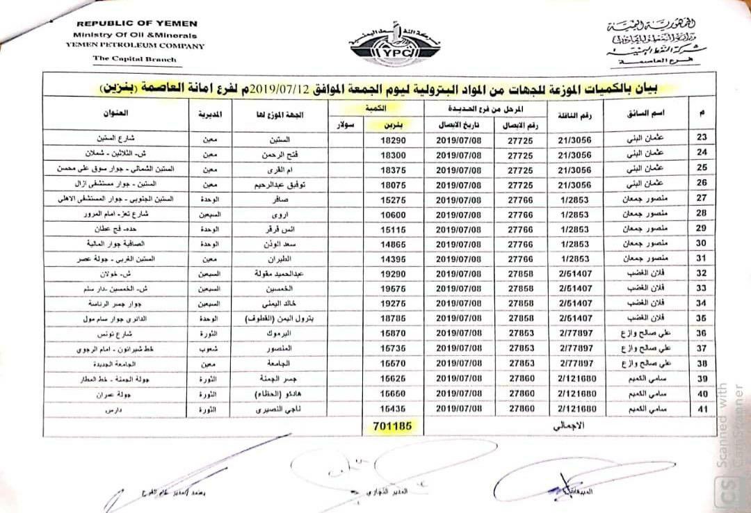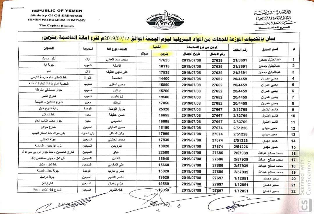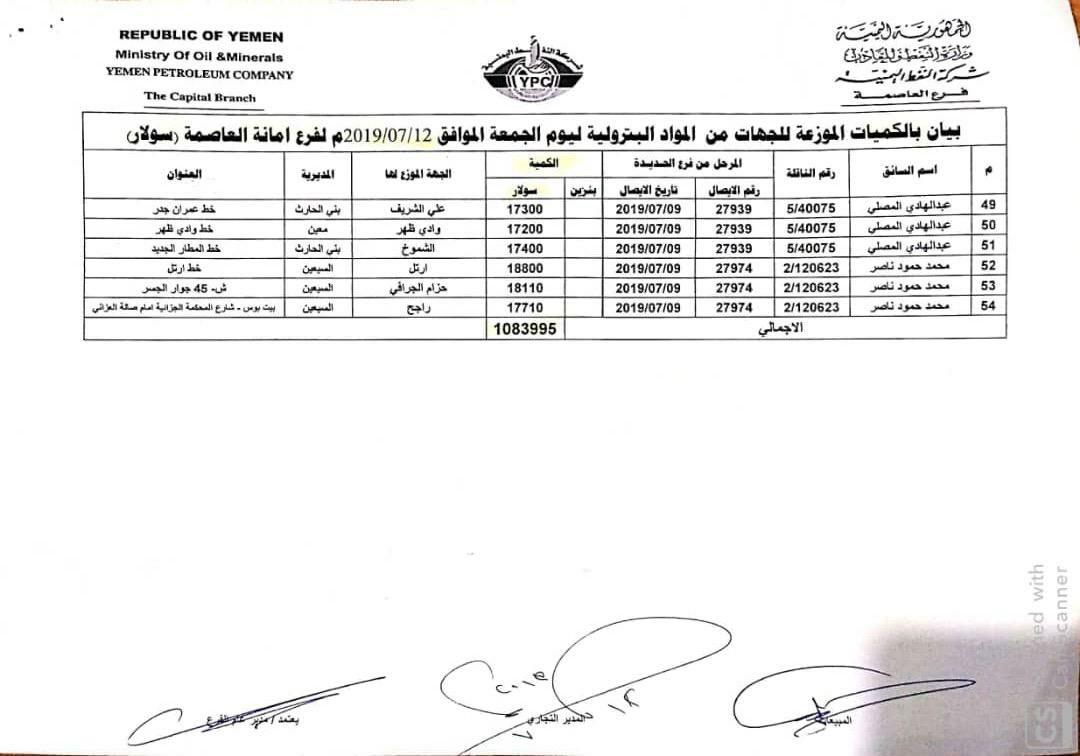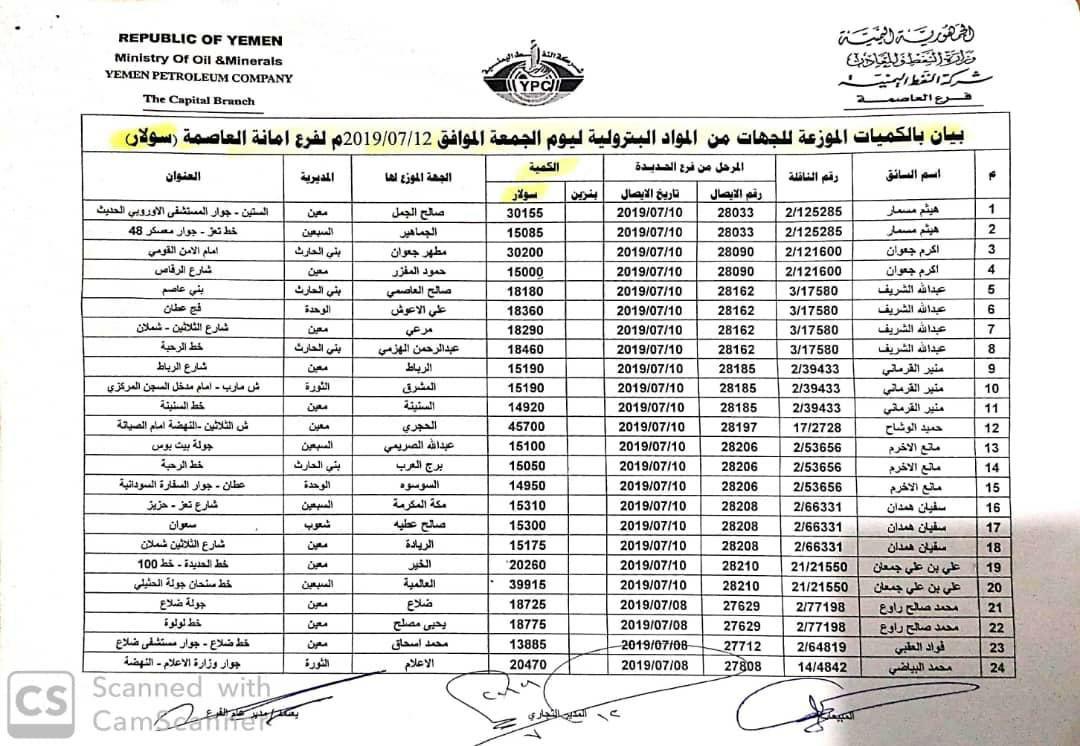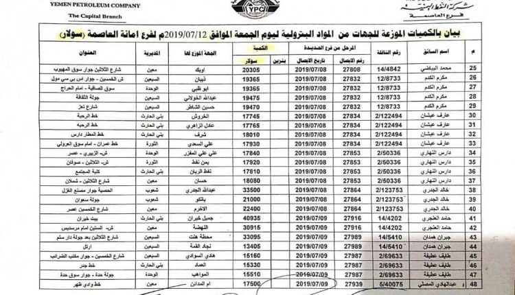 حددت شركات النفط اليمنية في كشوفات صادرة عنها الليلة المحطات التي ستيتم تموينها بمادتي الديزل والبنزين في امانة العاصمة، وحددت الاسعار الرسمية التي يجب على مالكي المحطات الالتزام بها.