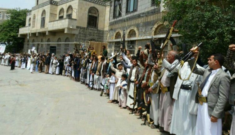 نضم أبناء ومشائخ وعقال ووجهاء وأعيان حي الغرابي الأعلى بمربع الشهيدطه المحطوري بمدينة حجة اليوم عقب صلاة الجمعة وقفة احتجاجية مسلحه دعما للجبهات بالمال والرجال واستمرار بتوعية أبنائنا في المراكز الصيفية وتنديدا واستنكارا بما قام بها النظام السعودي مؤخرا من استقبال للجنود أمريكيين وهذا يعبر عن مدى العماله و الاستهتار بحرمة الدين والمقدسات التي وصل اليها هذا النظام المجرم
