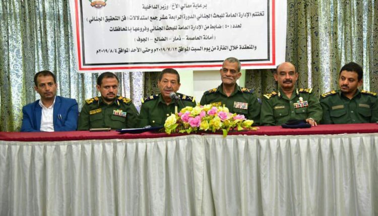 اختتمت اليوم الإدارة العامة للبحث الجنائي الدورة التدريبية في فن التحقيق الجنائي وجمع الإستدلالات والتي استمرت 25 يوما، واستفاد منها 50 ضابطا من منتسبي البحث في كل من العاصمة ومحافظات ذمار و الضالع والجوف .
