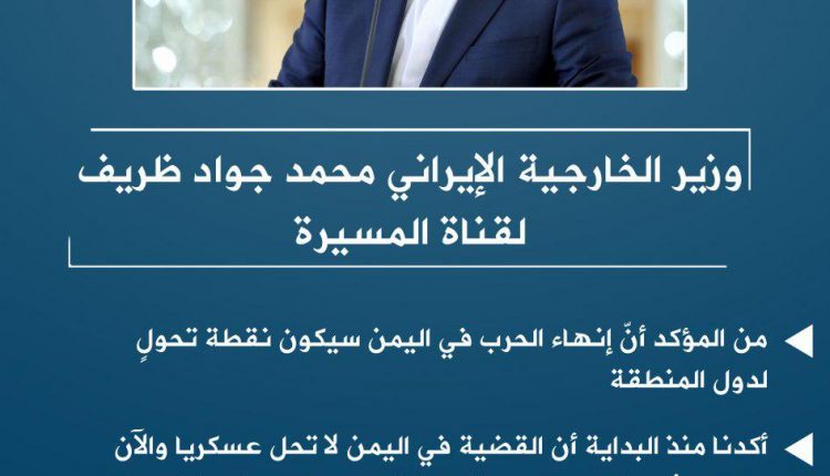 أكد #وزير_الخارجية_الإيراني محمد جواد ظريف لـ قناة #المسيرة إلى أن إنهاء الحرب في #اليمن سيكون نقطة تحولٍ لدول المنطقة.