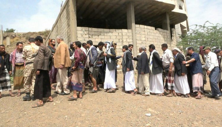 وفد رسمي من محافظة ذمار يزور المرابطين في جبهة الأربعين بتعز