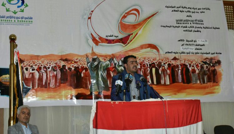 أٌشهر بصنعاء اليوم الأربعاء ملتقى الوعي والتلاحم الشبابي بالتزامن مع إصدار كتاب “شعراء الولاية اليمانيون “.