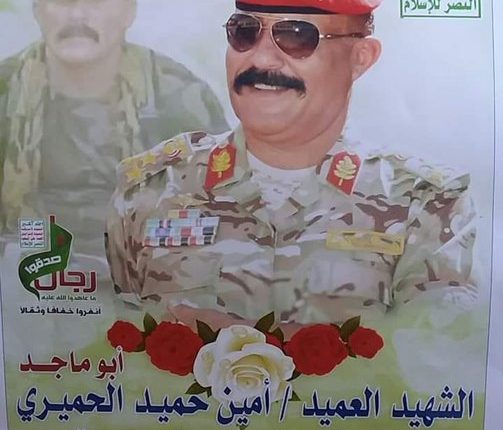 نعت قيادة حرس الحدود إستشهاد اللواء الركن أمين حميد الحميري قائد فرع الشرطة العسكرية بمحور صعدة، ومساعد قائد قوات حرس الحدود الذي ارتقى شهيدا خالدا وهو يدافع عن سيادة الوطن ضد تحالف العدوان ومرتزقته في جبهات الحدود بمحور نجران.