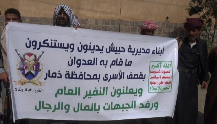 وقفة قبلية لأبناء مديرية حبيش تنديدا بمذبحة الأسرى وإحياء لذكرى عاشوراء