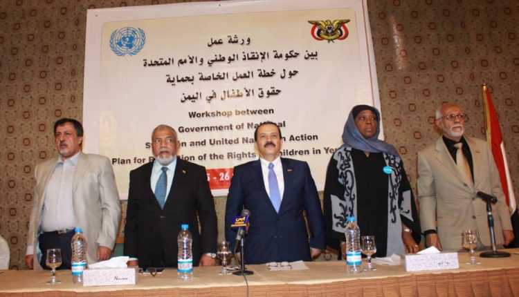 عٌقدت بصنعاء اليوم الاربعاء ورشة عمل حول خطة العمل الخاصة بحماية حقوق الأطفال في اليمن، بين حكومة الإنقاذ الوطني والأمم المتحدة.