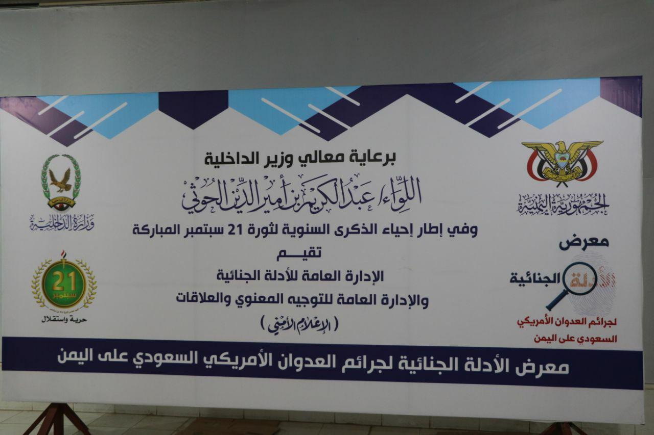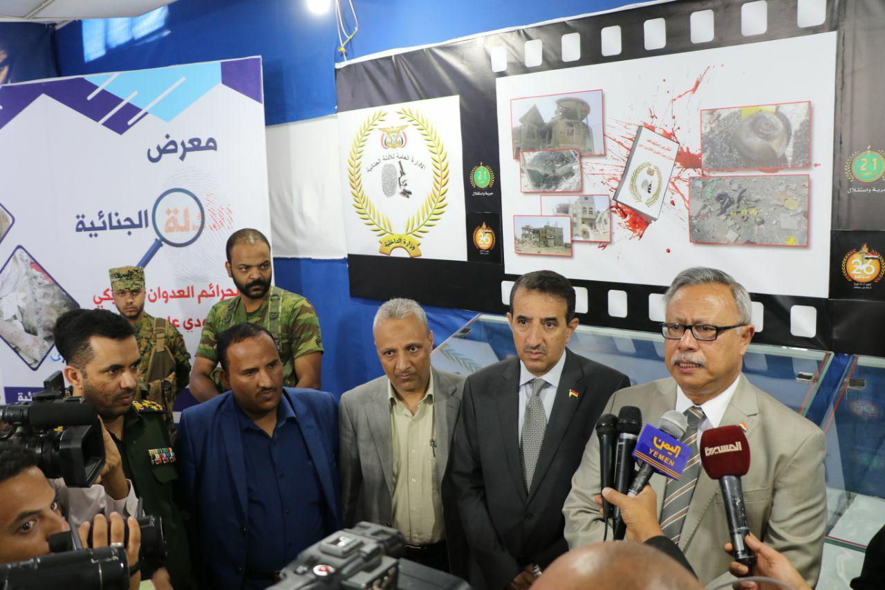 وقد أوضح العميد محمد محمد الآنسي مدير عام التوجيه والعلاقات العامة بوزارة الداخلية، أن وزارة الداخلية أقامت هذا المعرض لتخبر العالم ان الشعب اليمني لا ينسى ثأره وأنه قد عمل وفق القواعد العلمية والقانونية وبأيدي الخبراء المختصين على جمع كل الإدلة التي تثبت جرائم العدوان ، وقال العميد الآنسي : اننا نقدم للعالم الشواهد على هذه الجرائم لعله يخرج عن صمته الذي بلغ حد التواطؤ مع العدوان .