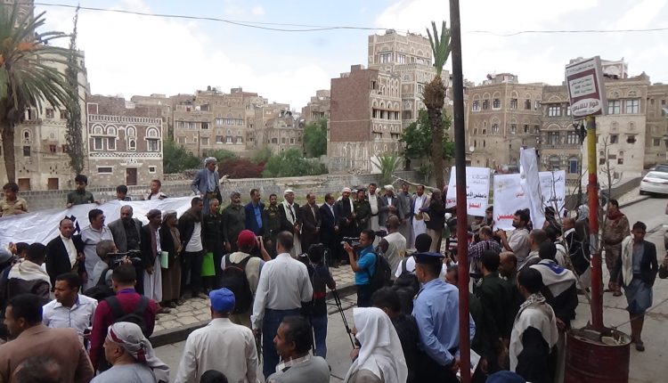 نظمت وزارة السياحة بمدينة صنعاء القديمة اليوم وقفة أحتجاجية للتنديد بجرائم العدوان السعودي الامريكي بحق القطاع السياحي والأثري في اليمن تزامنا مع الاحتفال باليوم العالمي للسياحة.