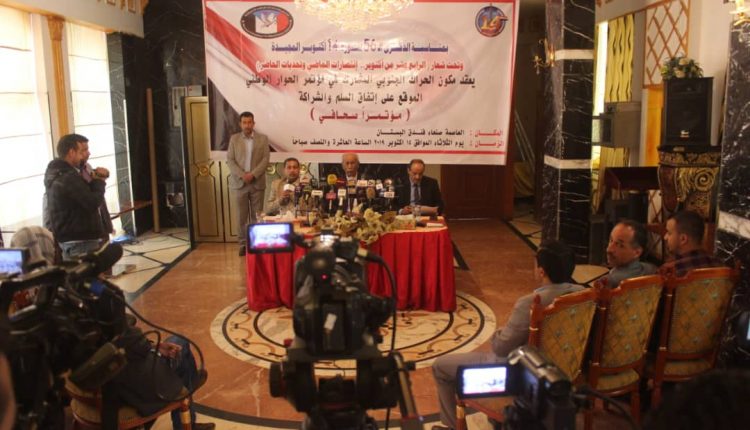 عقد مكون الحراك الجنوبي المشارك في مؤتمر الحوار الوطني الموقع على اتفاق السلم والشراكة اليوم بصنعاء، مؤتمرا صحفيا بمناسبة العيد الـ 56 لثورة الـ 14 من أكتوبر المجيدة.