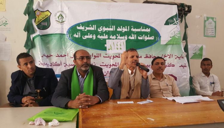 عٌقدت بمحافظة المحويت ندوة ثقافية حول ذكرى المولد النبوي، نظمتها وحدة التعليم الجامعي والوحدة السياسية بالمحافظة بالتعاون مع الملتقى الأكاديمي وملتقى الطالب الجامعي بكلية التربية.
