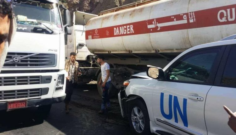 وكما هو ملاحظ أيضاً أن الأمم المتحدة لم تكتفي بالصمت إزاء ما يقوم به تحالف العدوان من إحتجاز لسفن المشتقات النفطية في البحر، بل انها للأسف تستخدم الشحنات التابعة لها لتموين سياراتها المدرعة لتعيق من خلالها حركة ناقلات المواد البترولية في الخطوط الطويلة وتمنعها من الوصول إلى مختلف المحافظات اليمنية وذلك بإعتراض الناقلات وافتعال حوادث مرورية وقطع خطوط السير كما توضح ذلك الصور المرفقة… فكيف يرجى من هكذا أفعالهم أن يصدر عنهم مصلحة للمواطن اليمني؟؟؟!!