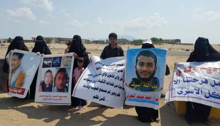 أسر المخفيين قسراً في سجون مليشيات الإمارات تواصل احتجاجاتها بعدن