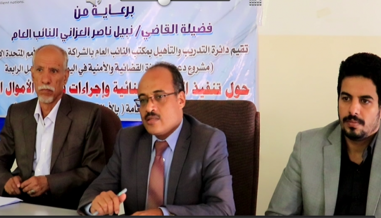 وتلقى 22 قاضياً يمثلون أعضاء النيابة في أمانة العاصمة ومحافظات الحديدة ،إب ، تعز، ذمار، في الورشة التي نظمتها على مدى ثلاثة أيام دائرة التدريب والتأهيل بمكتب النائب العام بالشراكة من برامج الأمم المتحدة “مشروع دعم الاجهزة القضائية والأمنية”، محاضرات متخصصة حول طبيعة الإجراءات القانونية السلمية الواجب اتباعها عند تنفيذ الأحكام الجنائية المتعلقة بتحصيل الأموال العامة.