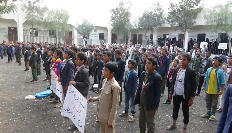 عمران.. وقفة احتجاجية لمدرسة الأنصار تنديداً بجرائم العدوان
