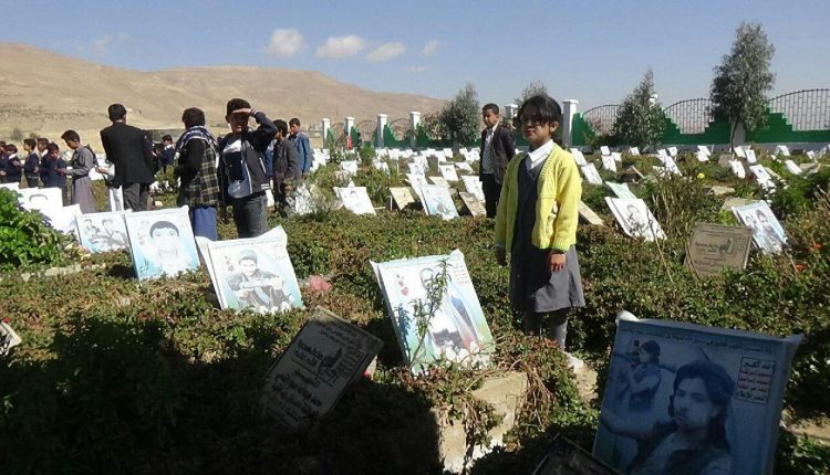 رفع أبناء الشهداء صورشهدائهم بكل عزةً وفخرٍ وإباء معاهدين شهدائهم أنهم على نهجهم ماضون ودربهم سائرون حتى يطهرون الأرض من دنس الغزاة والمرتزقة .