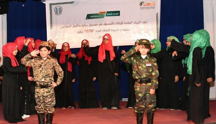 دشنت الهيئة العامة للزكاة اليوم بصنعاء ، مشروع كسوة الشتاء على ألف و 570 حالة من ذوي الاحتياجات الخاصة بقيمة 23 مليوناً و 535 ألف ريال بالتنسيق مع صندوق رعاية وتأهيل المعاقين.